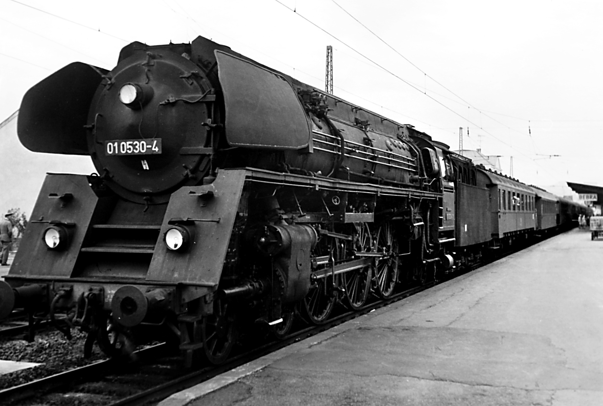 01 0530-4 ist die EDV Nummer der Lok 01 530. Diese Nummer erhielt sie im Jahr 1964, als sie von der damaligen Deutschen Reichsbahn der DDR im berühmten RAW Meinigen mit 34 anderen Maschinen eine umfangreiche Neukonstruktion erfuhr. Der Ursprung der Lok geht zurück in das Jahr 1937. Bei Henschel & Sohn in Kassel erblickte sie unter der Fabriknummer 23469 das Licht der Welt, welches schon sehr bald sehr finstere Züge annehmen sollte. Die damalige Deutsche Reichsbahn vergab ihr die Nummer 01 221 unter der sie bis 1964 fuhr.