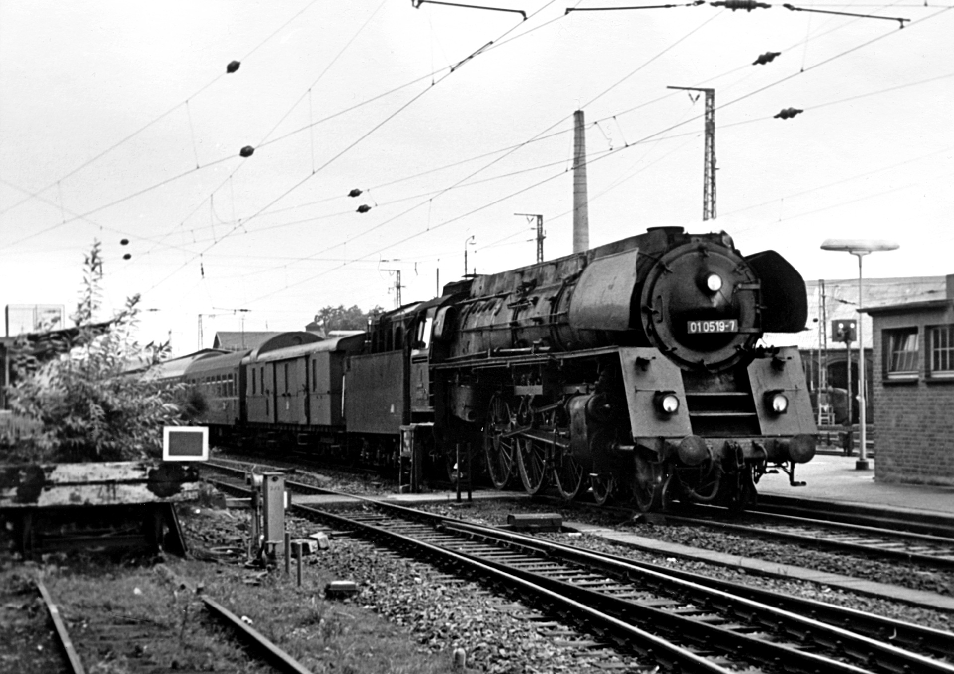 Damit kommen wir zum letzen D-Zug, der an diesem Tag festgehalten wurde. Es handelt sich um D1097 von Düsseldorf, der ab Bebra seine Reise weiter Richtung Dresden antritt. Als Zuglok kommt 01 0519-7 zum Einsatz. Die Bildqualität ist miserabel. Möglicherweise ist mein Vater auch gar nicht mit dem Auto, sondern mit eben jenem D-Zug aus Düsseldorf angereist. Das würde zumindest erklären, weshalb sich der Aktionsradius an diesem Tag auf den Bahnhof beschränkte.