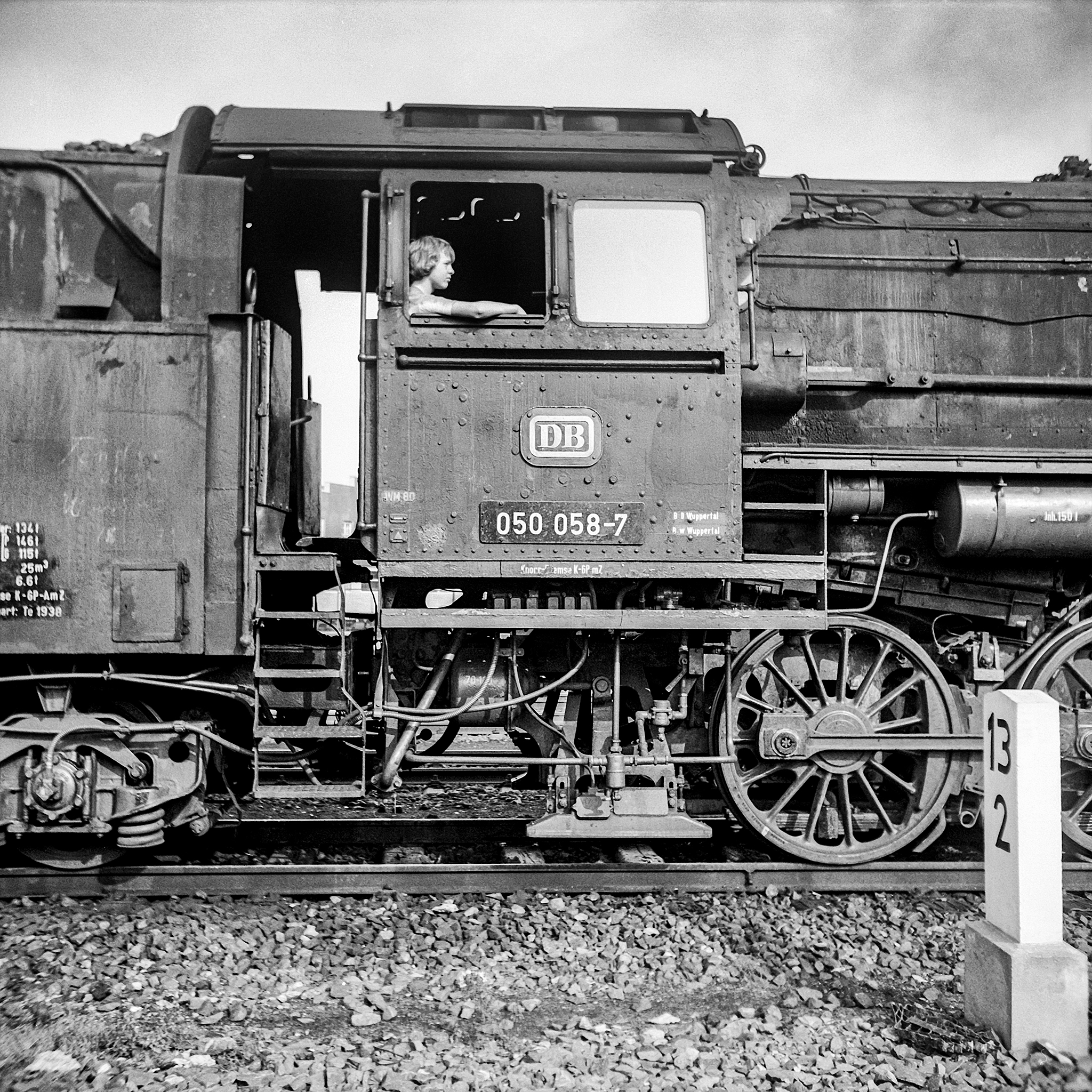 Natürlich bedarf auch eine Heizlok einer intensiven Bewirtschaftung, weshalb immer Personal in der Nähe war, welches dafür sorgte dass die Lok immer ausreichend Wasser und ein ausreichendes Feuer hatte. Wenn man lieb war – oder das Personal – war auch mal Platz und Zeit für „Kindheitstraum-Fotografien“, wie hier zu sehen am Beispiel des jüngeren Bruders meines Vaters, welcher offenkundig mit auf der Pirsch war und Modell stand bzw. saß. Damit schließt sich der Kreis zu den Anfangs gezeigten Bildern mit Blick den Kessellauf entlang Richtung Trecknase.