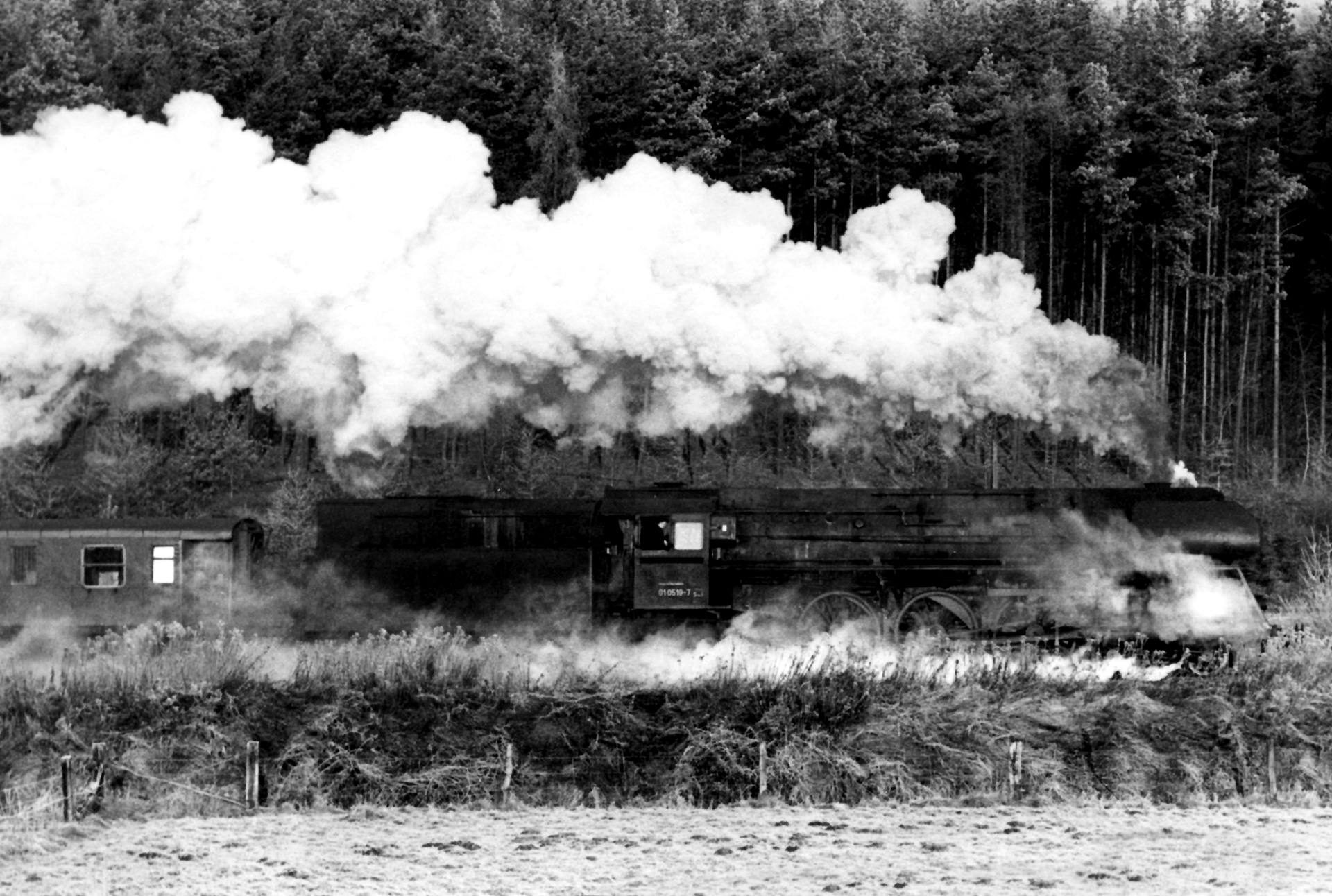 Heute ist Hönebach ein Ortsteil von Windeck im Landkreis Hersfeld-Rotenburg. 1972 war Hönebach wie heute direkt an der Grenze zu Thüringen, aber mehr noch direkt an der Grenze zur DDR. Im Jahr 1972 hat Hönebach vermutlich mehr Eisenbahnfotografen gesehen als je zuvor oder je wieder. Grund war, dass die Spatzen von den Dächern pfiffen, die DDR würde bereits zum Fahrplanwechsel 1973 ihre DR 01.5 gegen Diesel austauschen wollen. Damit wäre der Star der Schnellzuglokomotiven nicht mehr erreichbar gewesen. Also begab man sich auch noch so kurz vor Weihnachten auf nach Hönebach, um zu fotografieren was zu fotografieren war – und das war eine ganze Menge.