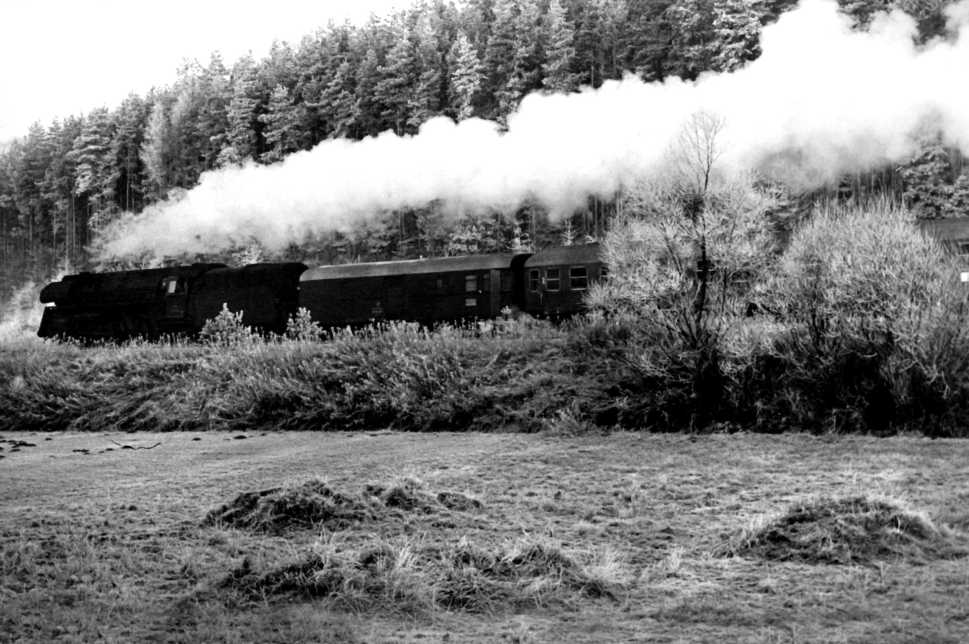Ein schwarzer Schatten huscht über den Bildausschnitt. Wir sehen eine nicht näher bestimmbare 01.5. Auch zum Aufnahmezeitpunkt ist nichts bekannt, genauso wenig wie eine Zugnummer. Aber eine Veröffentlichung ist das Bild dennoch wert. DR 01.5 hat den Hönebacher Tunnel verlassen und kann nun durch Ronshausen locker nach Bebra ausrollen.