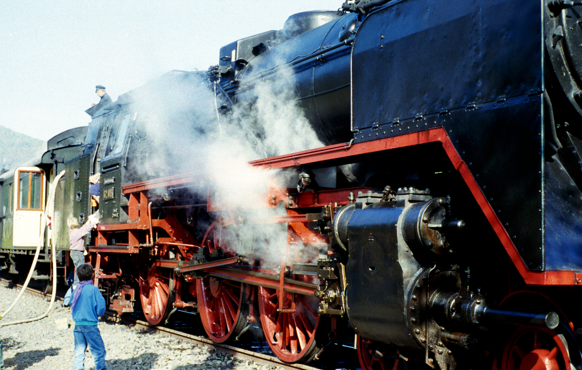 Mit dem Fall der Mauer und der Wiedervereinigung Deutschlands wurde auch die ehemalige Deutsche Reichsbahn der DDR an die Deutsche Bundesbahn angegliedert bzw. ging darin über. Mit ihr verfügte die Bundesbahn nun wieder über zahlreiche Dampflokomotiven, die noch mit gültigen Fristen im Bestand der Deutschen Reichsbahn waren. „Gültige Fristen“, für die, die nicht so in der Materie stecken, ist in etwa vergleichbar mit einer gültigen Tüv-Plakette. Die Loks durften also noch fahren ohne dass eine aufwändige und sehr teure Hauptuntersuchung nötig gewesen wäre.