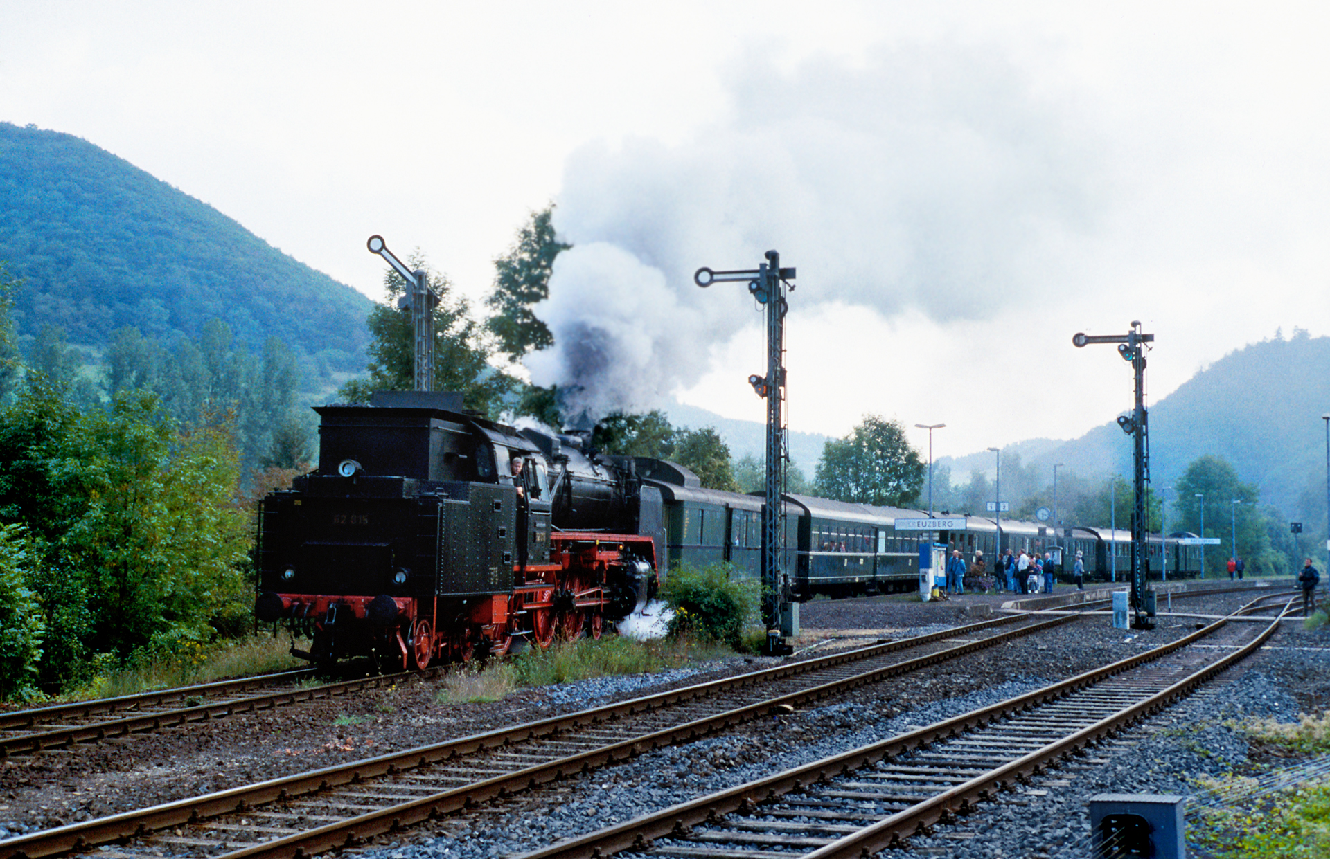 Die umfangreichen Rangiertätigkeiten wurden natürlich auch in Kreuzberg festgehalten. Die nächste Aufnahme zeigt wie 62 015 den Zug auf Gleis 1 drückt.