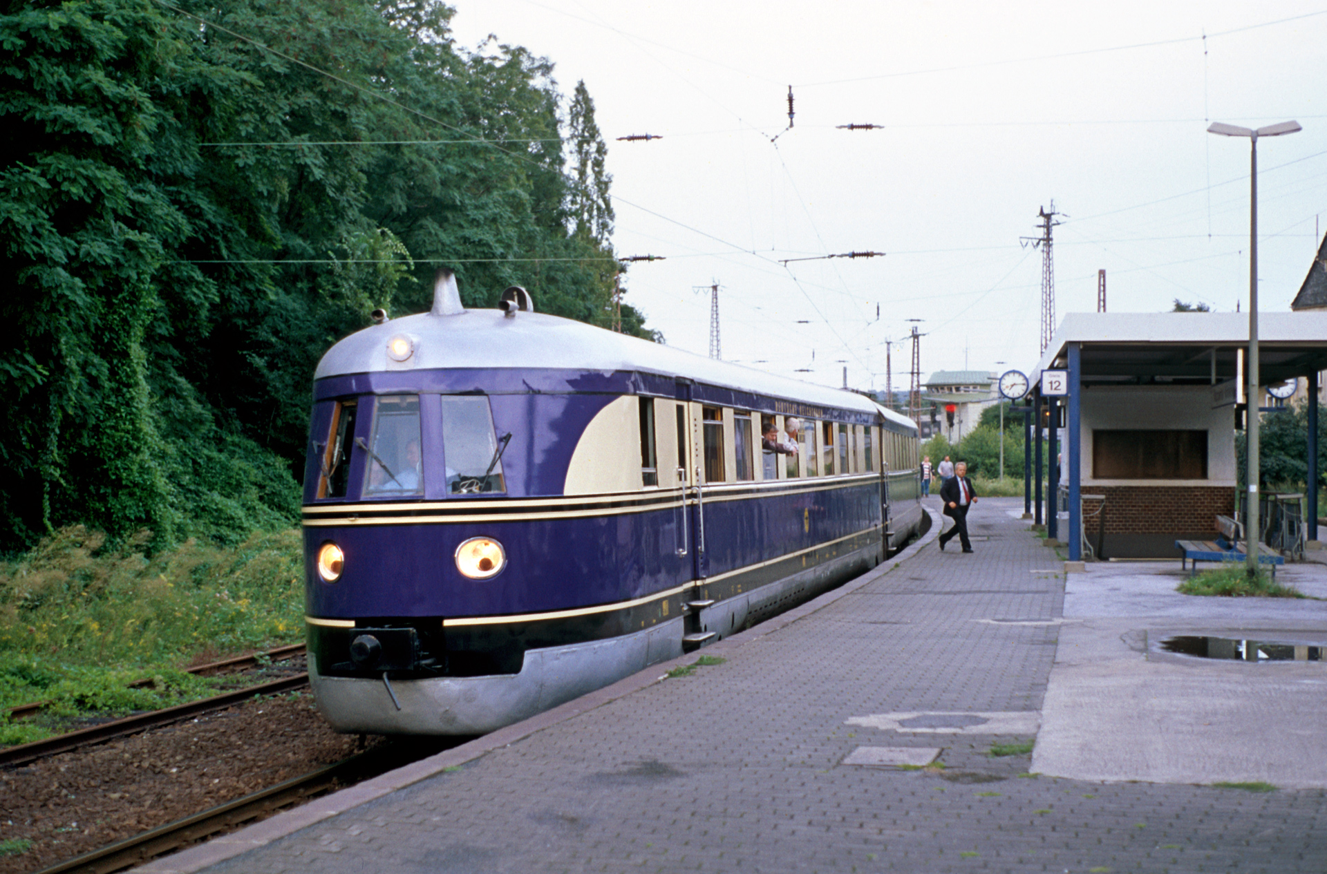 Beim hier zu sehenden DRG SVT 137 kann man mit Fug und Recht von einer echten Rarität sprechen – immerhin gibt es noch genau ein Exemplar dieses legendären Triebwagens, der als SVT 137 Bauart „Hamburg“ aus dem original Fliegenden Hamburger hervorging. Die Erinnerung mag täuschen, aber ich glaube an diesem Tag mit in Vohwinkel gewesen zu sein, und das Ganze persönlich als „nicht so spannend“ abgehakt zu haben. Umso besser, dass ich jetzt fast 20 Jahre später noch mal auf die Bilder stoße und mich damit beschäftigen kann.